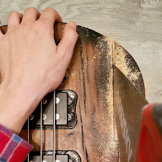 I began with one-on-one bass lessons, but shortly dropped out. Something wasn't fitting, I felt trapped and cornered. I sold my red quilted maple Schecter and built my own bass from scrap walnut wood and an old neck found at a thrift store and burned its edges. It was alright, I liked how it sounded and how imperfect it was: I didn't have to be anxious leaving fingerprints or slamming strings too hard. The second, and the one I currently use, is based on a broken vintage Japanese guitar that I've modified. I never finished that project completely. It still has a hole in the top from where a little red wi-fi light used to be embedded (it was one a the first cordless guitars on the market back then). The custom acid-on-metal little pictures that I designed for it were abandoned, and the 12th fret buzz hasn't been addressed. I like it... And it was a great timing -- just as I discovered the concept of a prepared instrument. On Swamp Lantern I freely indulge playing my bass with a cheese grater and a candle extinguisher. I speculate that Omphalopticon understands the joy!